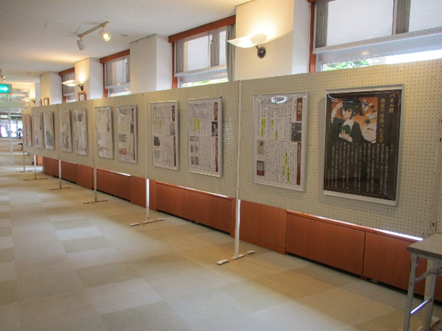 青森県近代文学館で令和4年に開催した特別展のパネルを廊下に展示しています。教科書に作品が掲載され続けている作家を紹介しています。当館で所蔵する関連図書も合わせて紹介していますので、この機会に読んでみてはいかがでしょうか。
