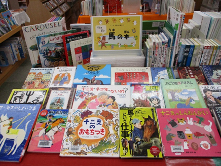 今年の干支にちなんで、馬が出てくる絵本やよみものを展示しています。